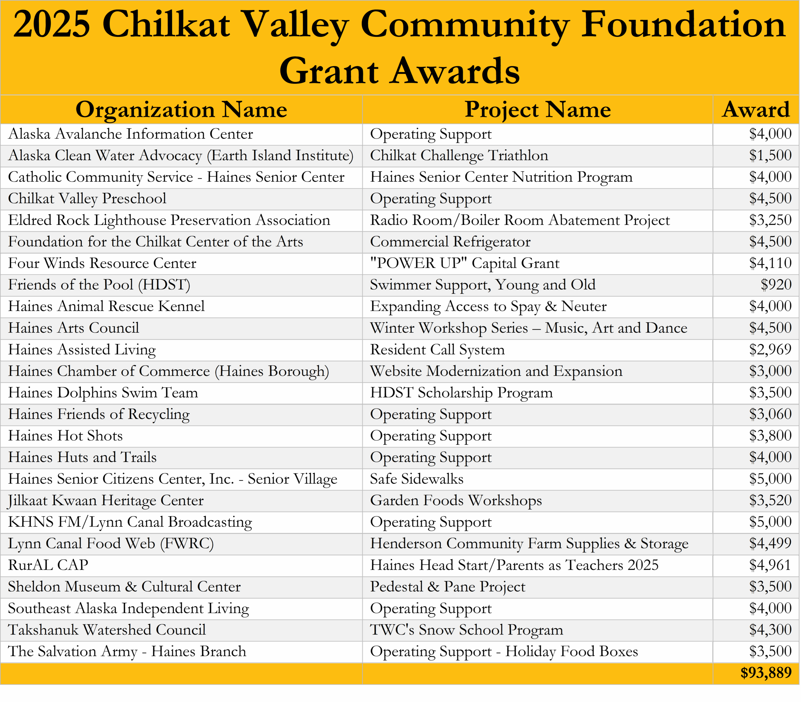 The Chilkat Valley Community Foundation is thankful for all of the nonprofits that provide important services and activities that help make ours a thriving community.